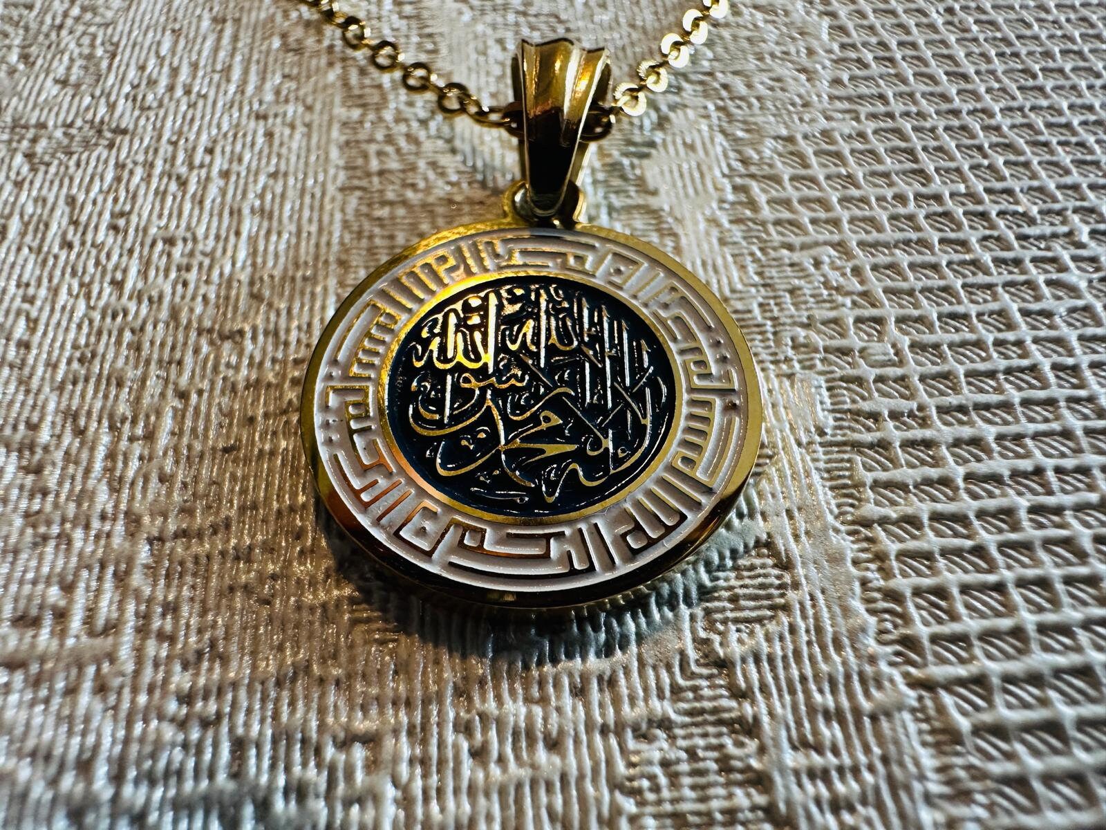 Beautifully Engraved Gold Kalma & Kufic Bismillah